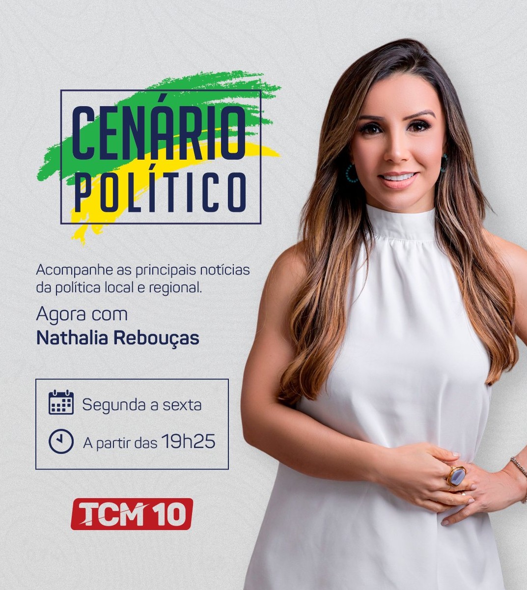 O programa Cenário Político na grade da TV Cabo Mossoró (TCM Telecom), Canal 10, agora conta com a apresentação de Nathália Rebouças. Com foco na área política de Mossoró e do RN, a atração jornalística vai ao ar, de segunda a sexta, a partir das 19h25.