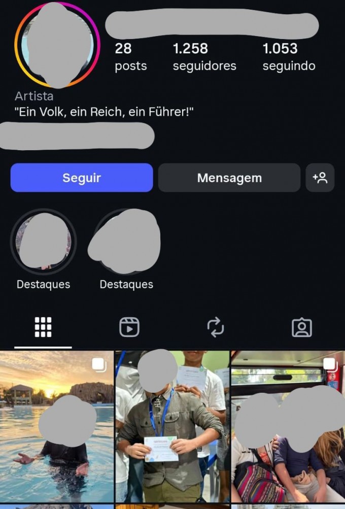 No seu endereço pessoal no Instagram, a que tive acesso, ele usa slogan nazista – em alemão – para recepcionar seguidores: “Um povo, um império, um guia.” Tem foto ainda com insígnia da “Cruz de Ferro” no pescoço e a mesma farda…