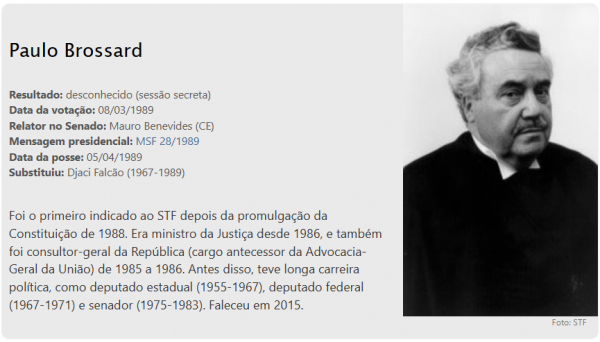 A votação de indicações ao STF só passou a ser pública com a Constituição Federal de 1988. Até então, a análise de nomes para cargos de autoridade no Senado ocorria em sessão secreta. A mudança foi incorporada ao Regimento Interno da Casa pela Resolução 18, de 1989.