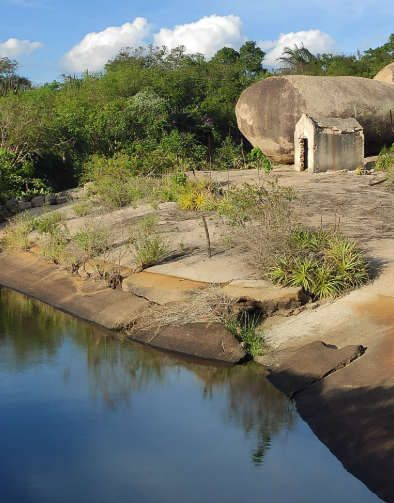 Às margens do pequeno riacho, sentado e com as costas repousando no espaldar inclinado de uma grande pedra, gozando a sombra de uma quixabeira, o adolescente, absorto, observava o revolutear de uma folha seca em suas águas.