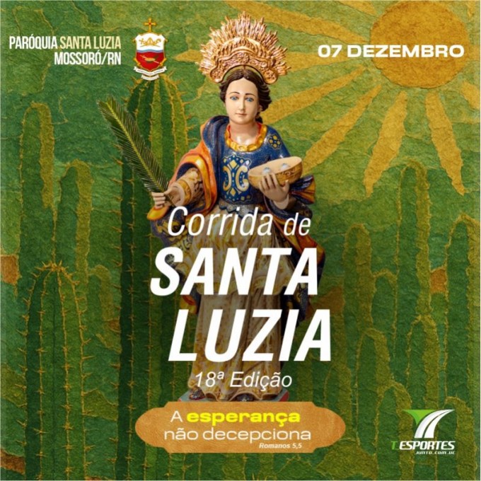 Mais uma edição que pretende atrair o maior número de participantes. Será no dia 07 de dezembro, com largada às 5h, em frente à Praça do Museu Lauro da Escóssia, em plena festa da padroeira da Diocese de Mossoró.