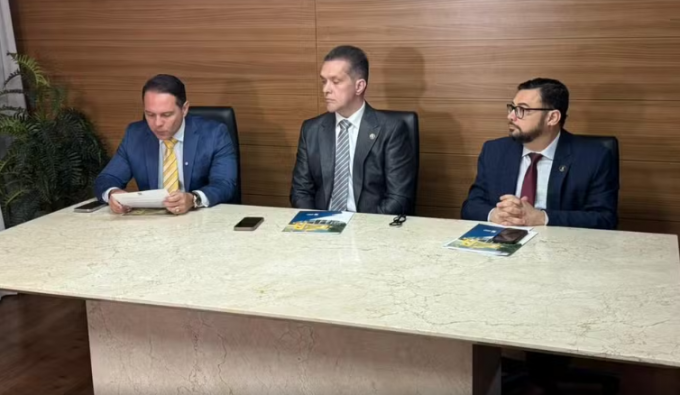 Mesa diretora da Casa participou de coletiva nesta terça-feira (Foto: Sérgio Henrique Santos/Inter TV Cabugi)
